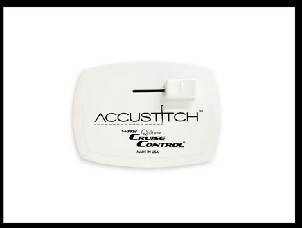 Modify your stitch length by sliding the button on the control module. Slide it to the left for basting stitches and to the right for higher stitches per inch. Unleash your imagination and create limitless designs with the customizable stitch length. Please keep in mind that the Accustitch is compatible with various brands and models, therefore the slider does not feature numerical indicators.