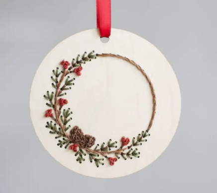 Diy Wood Embroidery Kit - Pinecone Wreath Ornament