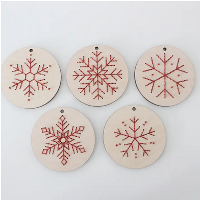 Diy Wood Embroidery Kit - Set of 5 Christmas Ornaments