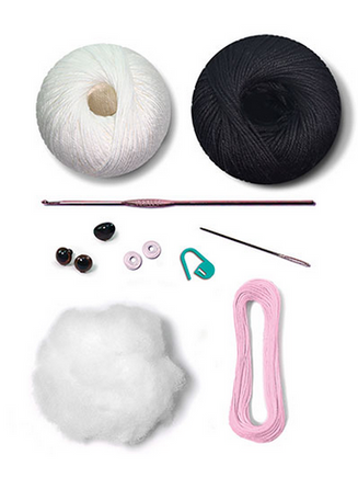 What is included: 1 ball of Amigurumi 2.64 oz - color 8990 1 ball of Amigurumi 1.23 oz - color 8001 1 skein of Amigurumi 8.75 yd - color 3077 Polyester stuffing - 1.41 oz Safety eyes 12 mm (Brown) Safety nose 12 mm Crochet hook 2.5 mm Tapestry needle 1 locking stitch marker.
