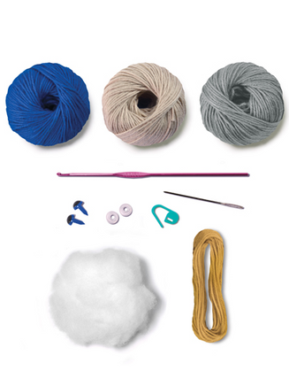 All kits contain: Balls of Amigurumi yarn, Skein of Amigurumi yarn, Crochet Hook, Tapestry Needle, Safety Eyes, Stuffing Fiber and Stitch Marker.