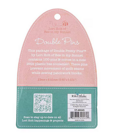 This package of Double Pretty Pins™ by Lori Holt of Bee in my Bonnet contains 100 pins and comes in a cute little plastic bee container! These pins prevent movement of fabrics while sewing apparel and quilting projects.