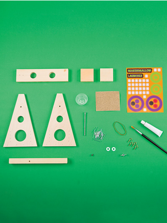 The Marshmallow Launcher is as fun to use as it is to build! Kit features precut quality wood pieces with predrilled holes for ease of assembly. Once built, the fully functional launcher can be used for fun and learning about physics! Marshmallow Launcher kit makes one launcher. Marshmallows not included. Product suited for ages 8+.