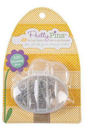 This package of Rustproof Blocking Pretty Pins™ by Lori Holt of Bee in my Bonnet contains 100 pins and comes in a cute little plastic bee container!